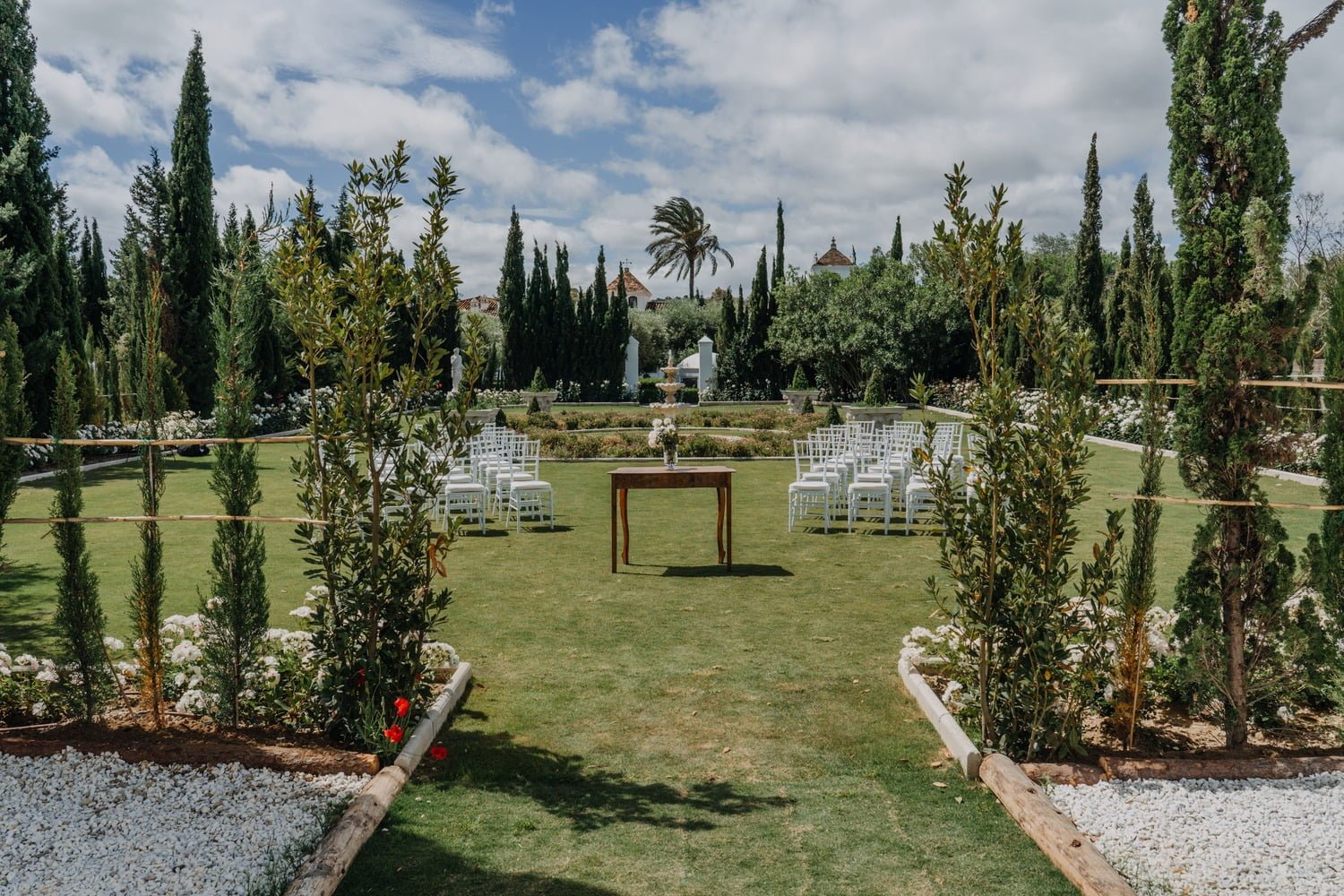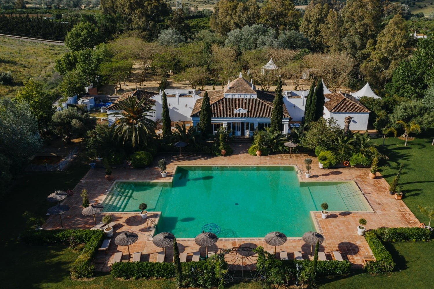 The finca provides a romantic atmosphere surrounded by the natural beauty of the Andalusian landscape, creating a perfect backdrop for your special day. Located close to the beach and near Sotogrande’s golf courses and exclusive boutiques, it combines elegance with convenience. The boutique hotel features 30 uniquely decorated rooms, accommodating up to 60 guests, with additional lodging options nearby. Let our team of experts make you dream Wedding in Spain come true!